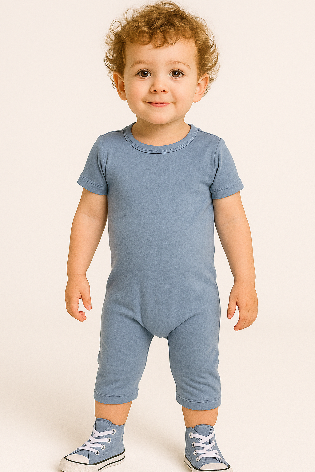 Macacão Curto Sem Zíper e Sem Botões - Azul