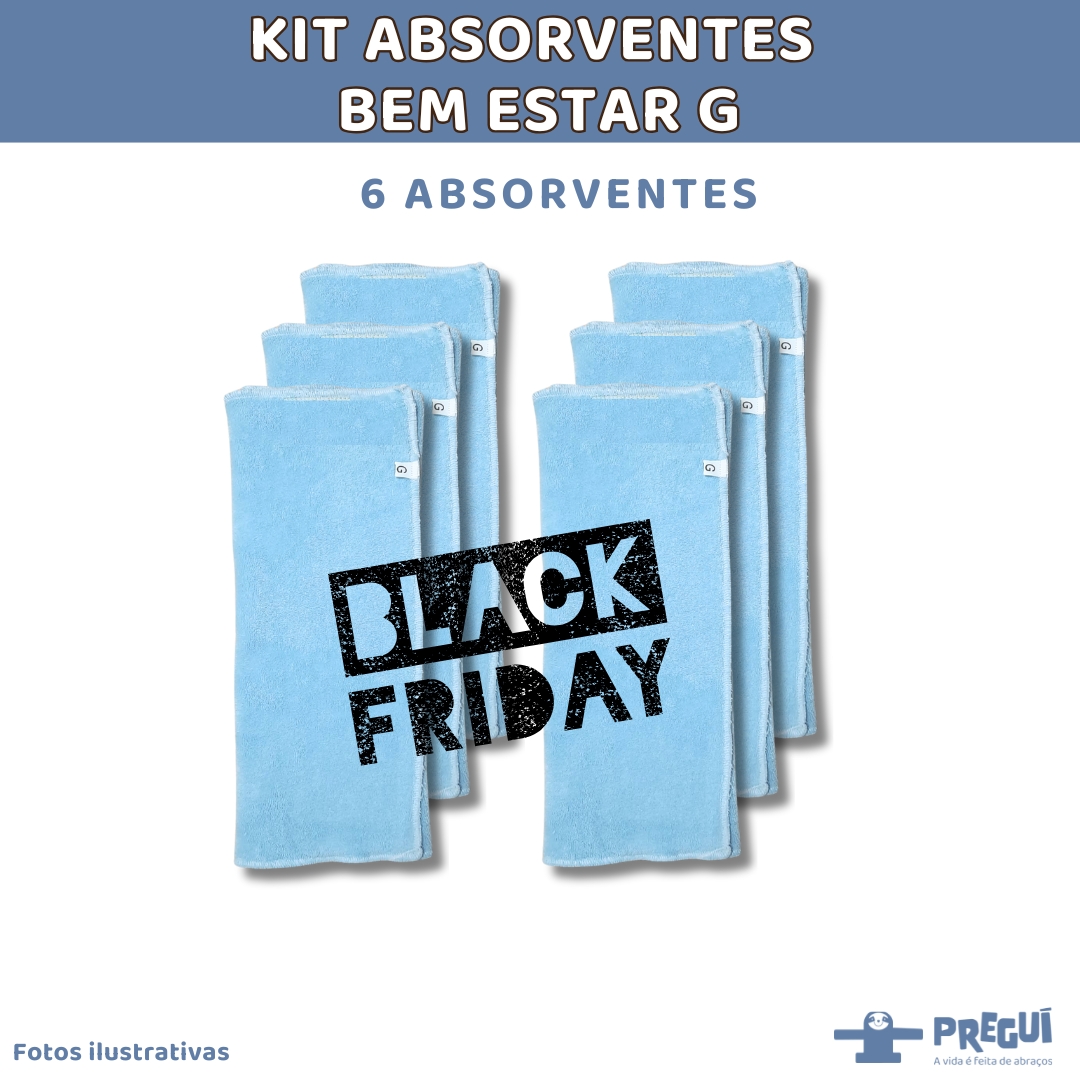Kit com 6 absorventes Bem Estar G com tecido absorvente e uma camada com toque seco. Modelo tipo toalha, para usar deve ser dobrado em 3 partes.